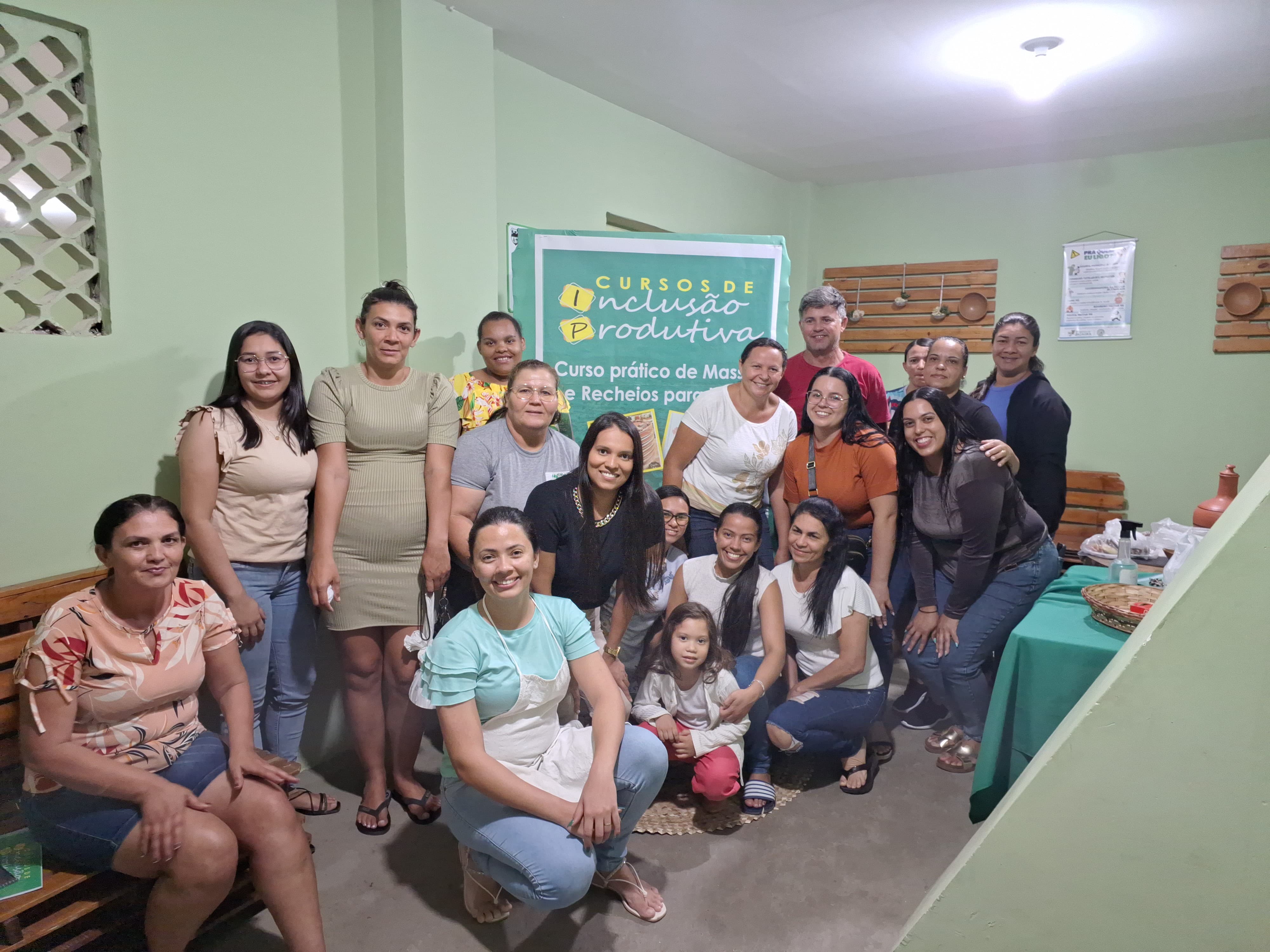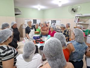 Nos dias 28 e 29 de Agosto (28-29/08/2024) a assistência social proporcionou aos seus beneficiários a oportunidade de fazer um curso de inclusão produtiva para massas e recheios de bolos. Em cada dia teve 1 turma própria, as quais puderam ver de pertinho o processo de fabricação por meio das mãos de uma profissional.
