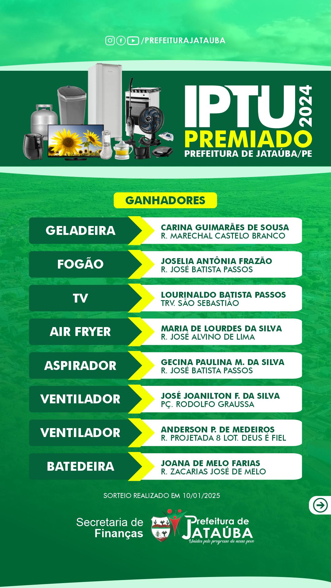 Ganhadores da promoção IPTU Premiado 2024 🎉