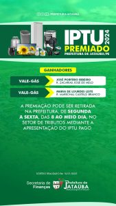 O sorteio foi realizado na última Sexta, dia 10-01-2025. A premiação pode ser retirada na prefeitura, de segunda a sexta, das 8 aos meio dia, no setor de tributos mediante a apresentação do IPTU pago.