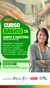 Inscrições: CRAS – Av. José Lopes (ao lado da secretaria de assistência)