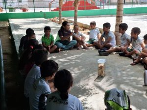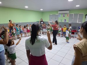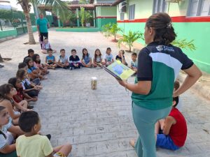 As crianças participaram de dinâmicas que as incentivaram a prática da leitura.