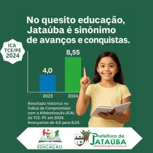 O Índice de Compromisso com a Alfabetização (ICA) do TCE-PE atribuiu nota 8,55 ao Município de Jataúba.